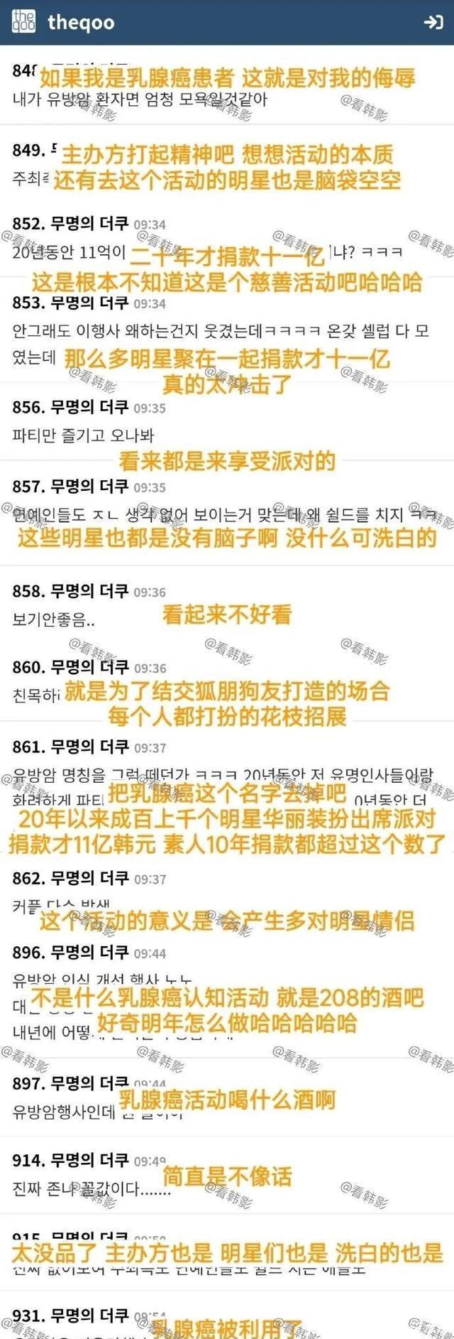 不是,你没事吧? 以上要求和内容,哪一点与慈善挂钩?不知道的还以为是什么时尚活动,办一场晚宴花的钱,都要超过募捐的善款了吧? 好好地慈善晚会,变成了明星吃喝玩乐和交友的场所,一桩桩一件件,都在挑战大众底线,任谁看了都会无语吧?也难怪小韩网友绷不住吐槽。 对此,小韩网友火力全开,表示 “不应该叫慈善晚会,应该改名成联谊大会,当天应该有不少看对眼的艺人吧?”,还有人请愿彻底取消该活动。 对于参加该活动的明星,网友也没有放过,纷纷下场吐槽他们“没脑子”。